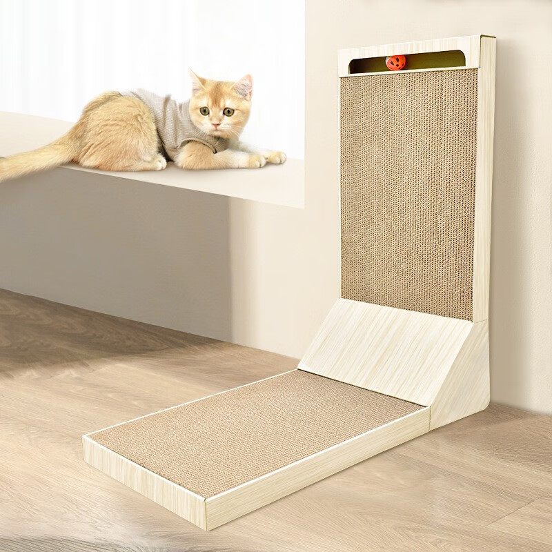 乐卡利猫窝猫抓板立式大号瓦楞纸耐抓耐磨立式磨爪猫抓板猫玩具猫用品 可抓可躺不飞屑 L型猫抓板大号(毛球款)-含铃铛球