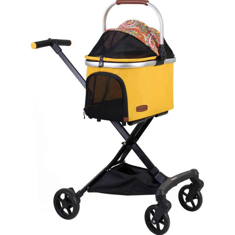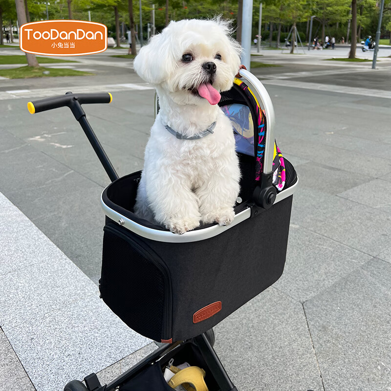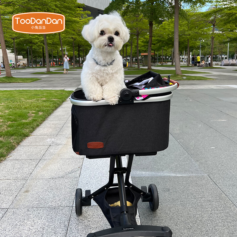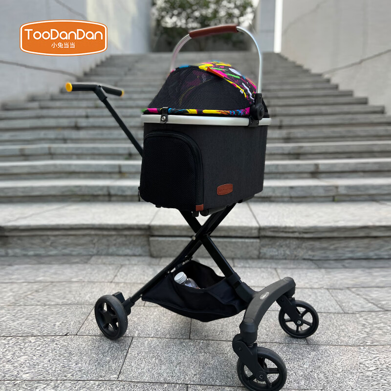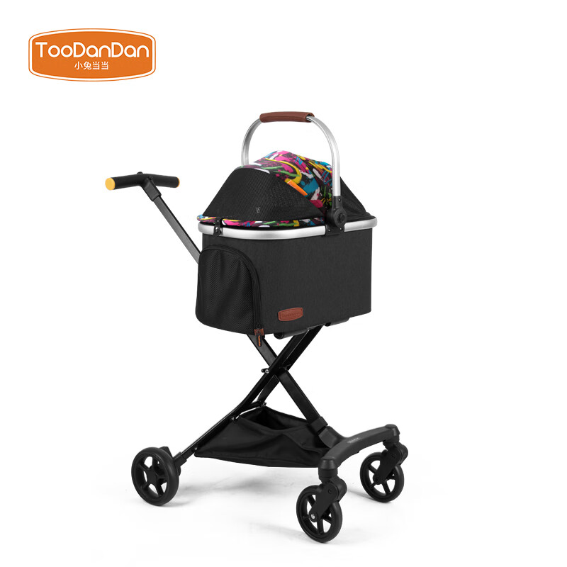 姒桀美国小兔轻便可折叠可分离推车猫车外出旅行狗窝车载提篮 Q7-1(S)黑色花布 承重8kg