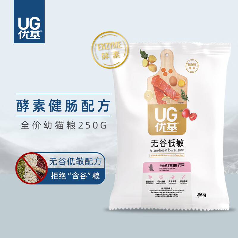 优基猫粮幼猫粮 无谷低敏酵素室内加菲波斯猫布偶猫橘猫幼猫猫粮离乳期小包试吃装 250g 1-12月