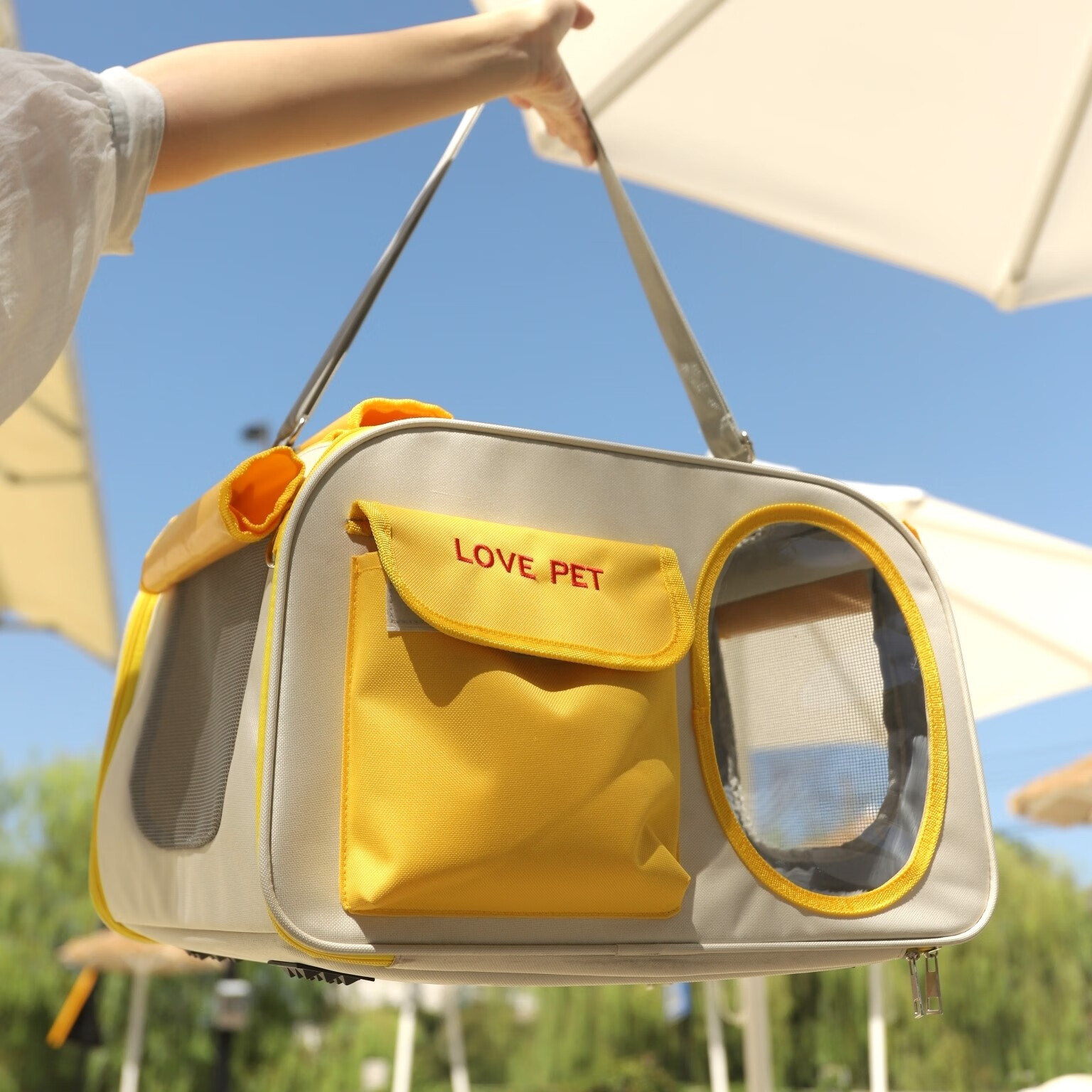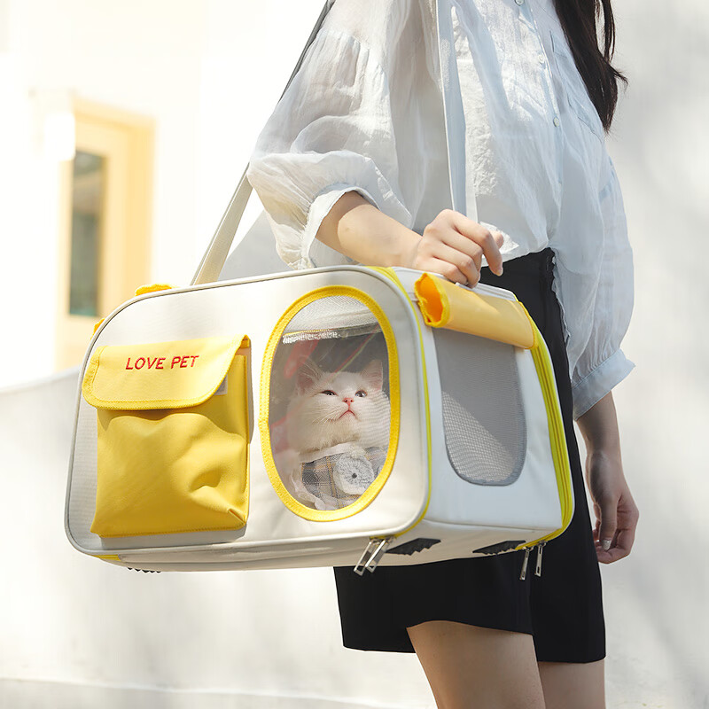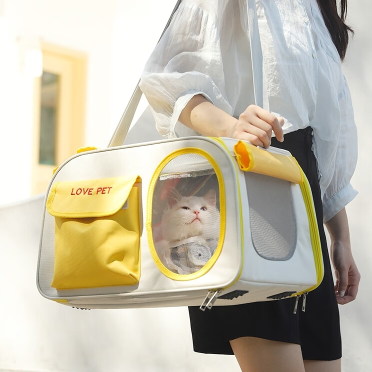 惠芸阙猫包外出便携猫咪携带猫笼手提式狗狗包大容量高颜值双肩宠物背包 柠檬黄 手提/单肩/斜跨 18斤内猫咪/13斤内狗狗