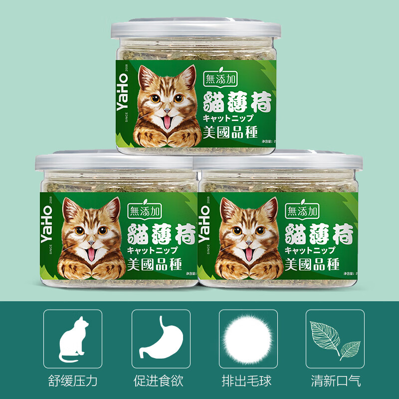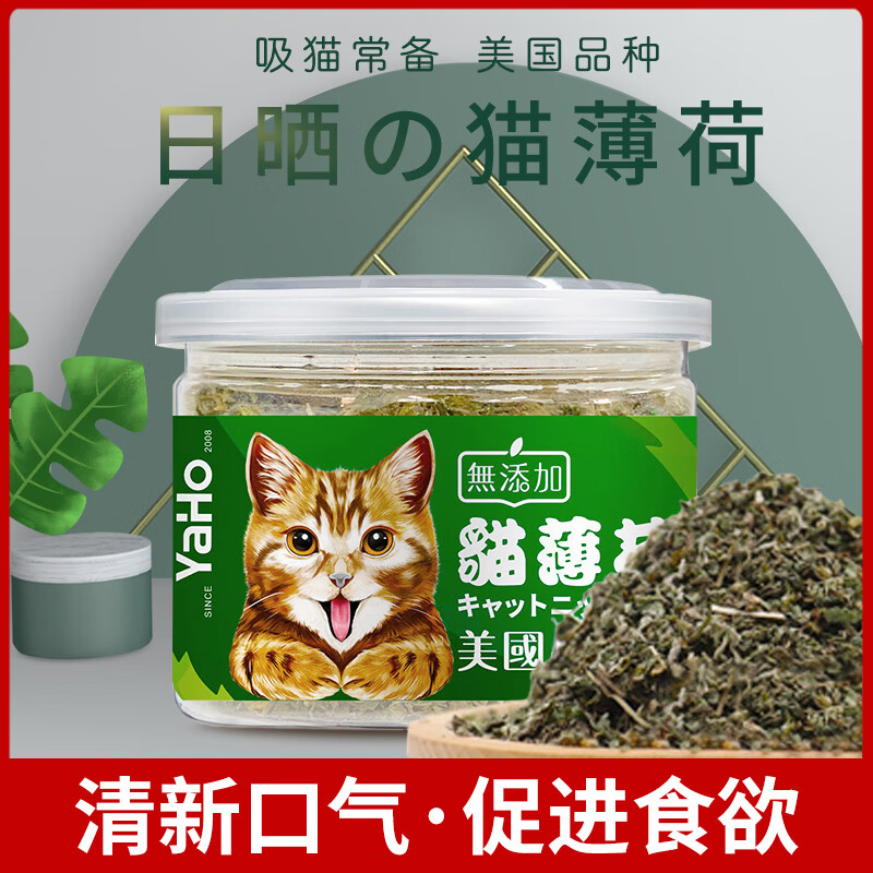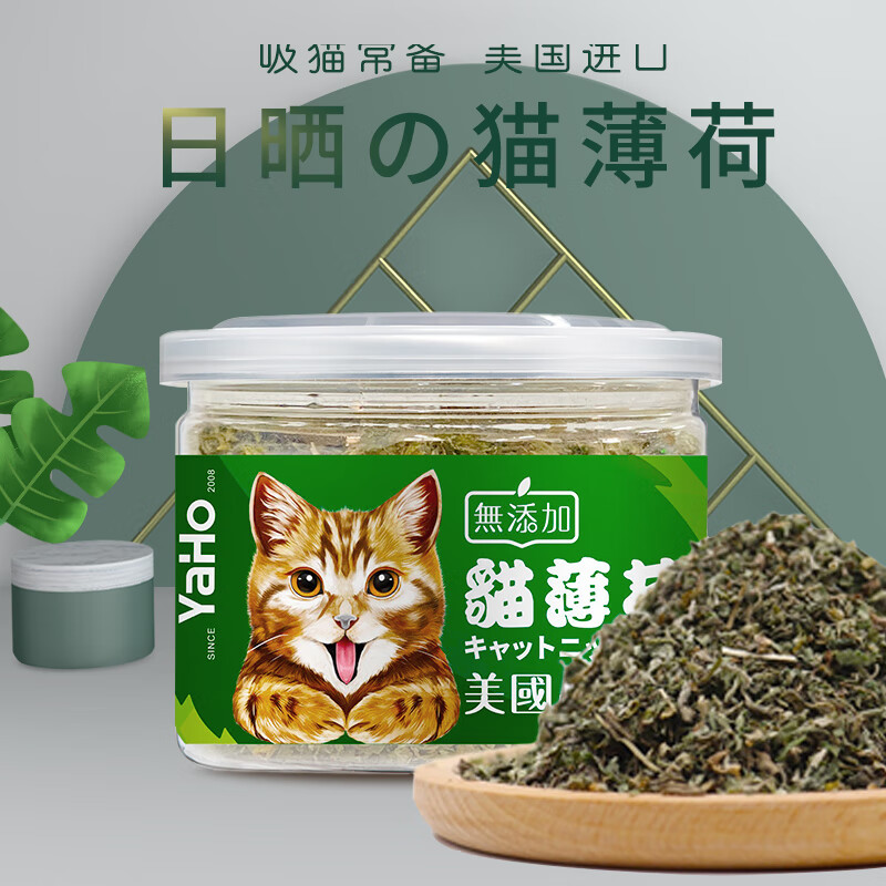 泰格宠物亚禾猫薄荷草粉叶调节肠胃猫零食去毛球助消化天然猫草片宠物用品