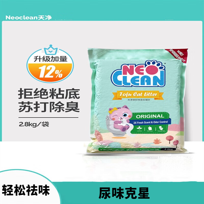 天净(NEOCLEAN)猫砂豆腐混合除臭无尘去味猫沙原味10膨润土2.5公斤结团快无添加 混合猫砂:加量12% 33.6斤/共6包