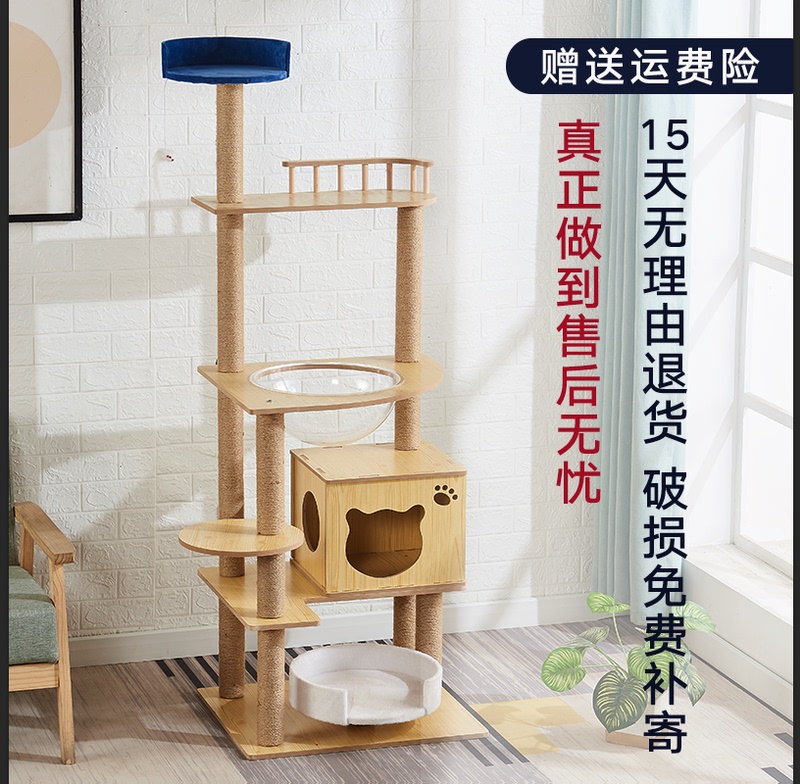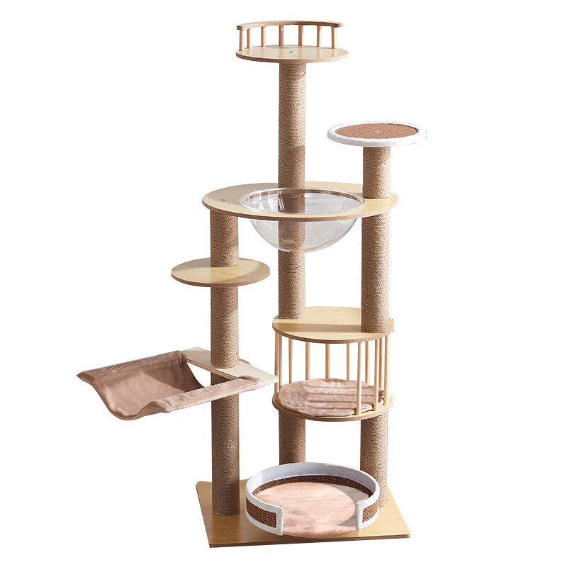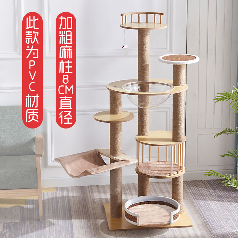 跃越(yueyue) 猫架猫爬架猫窝猫树一体四季通用太空舱剑麻木质不占地高层墙壁式 A04