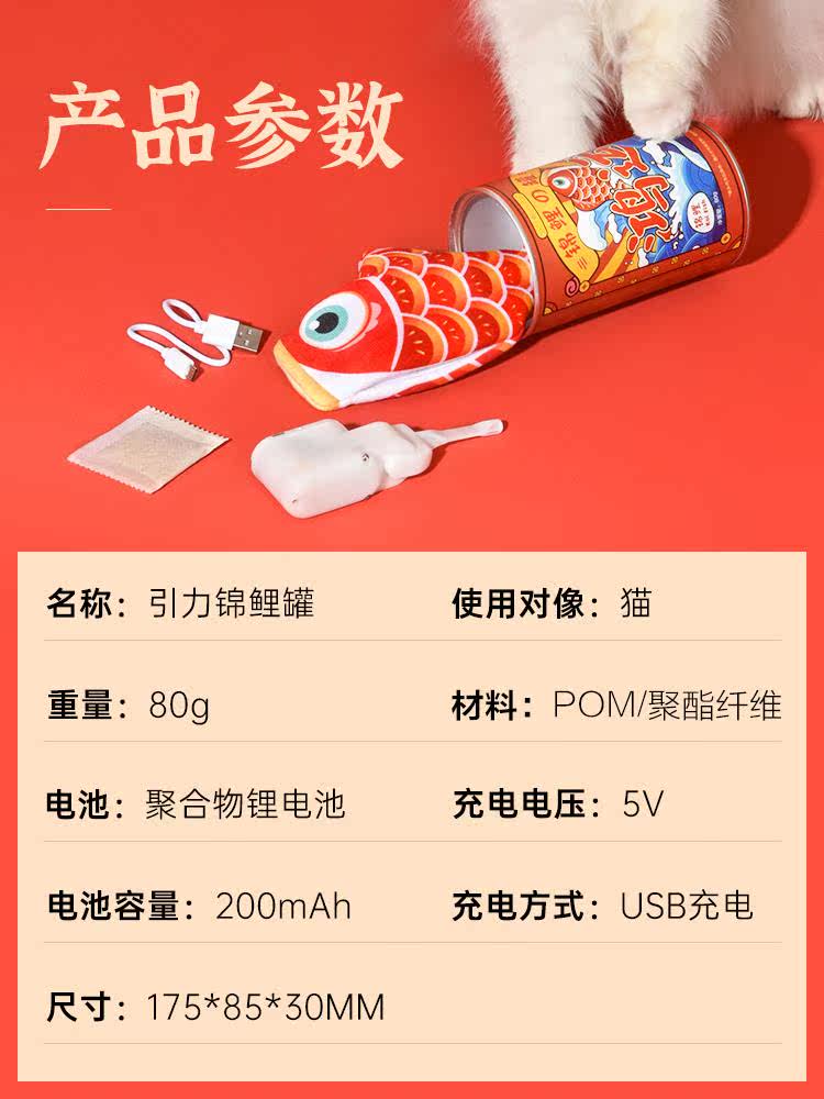宠有引力电动猫玩具自嗨解闷猫薄荷逗猫棒鸿运锦鲤跳跳鱼猫咪用品