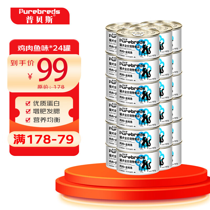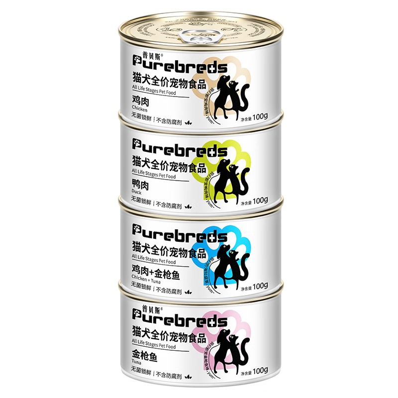 普贝斯犬猫咪主食罐头宠物零食罐头成猫幼猫狗狗高营养流食肉泥湿粮罐 鸡肉金枪鱼混合味*24罐