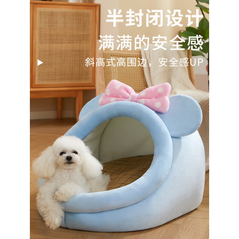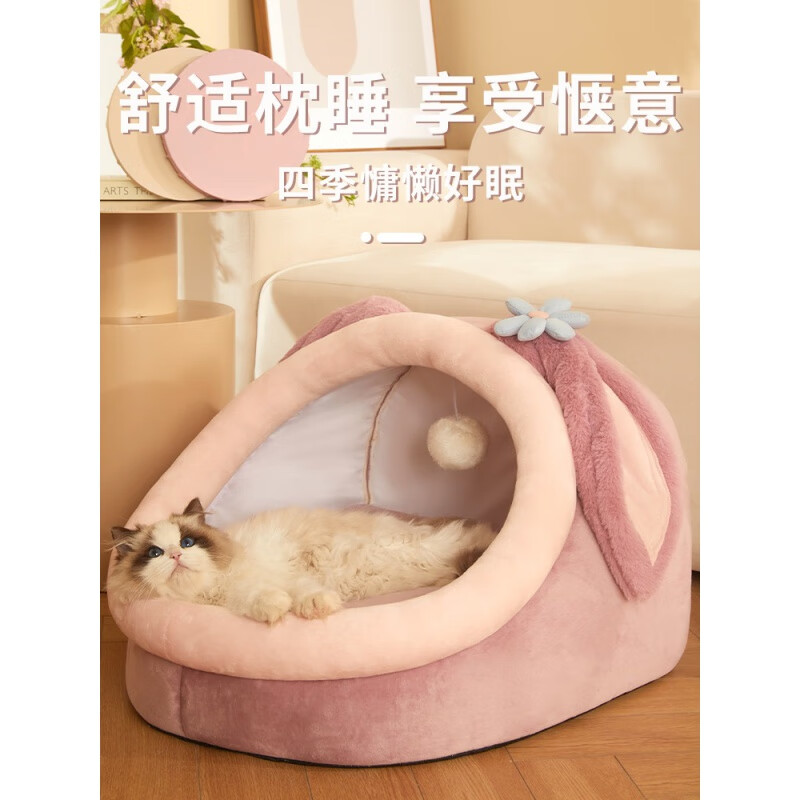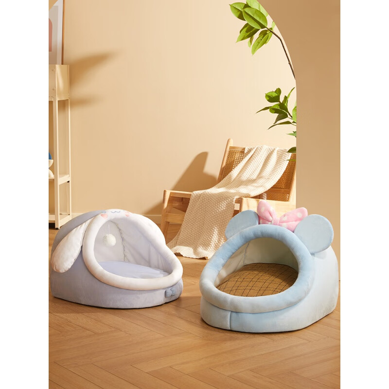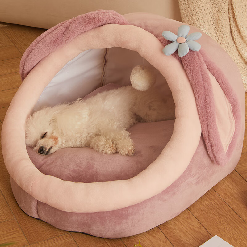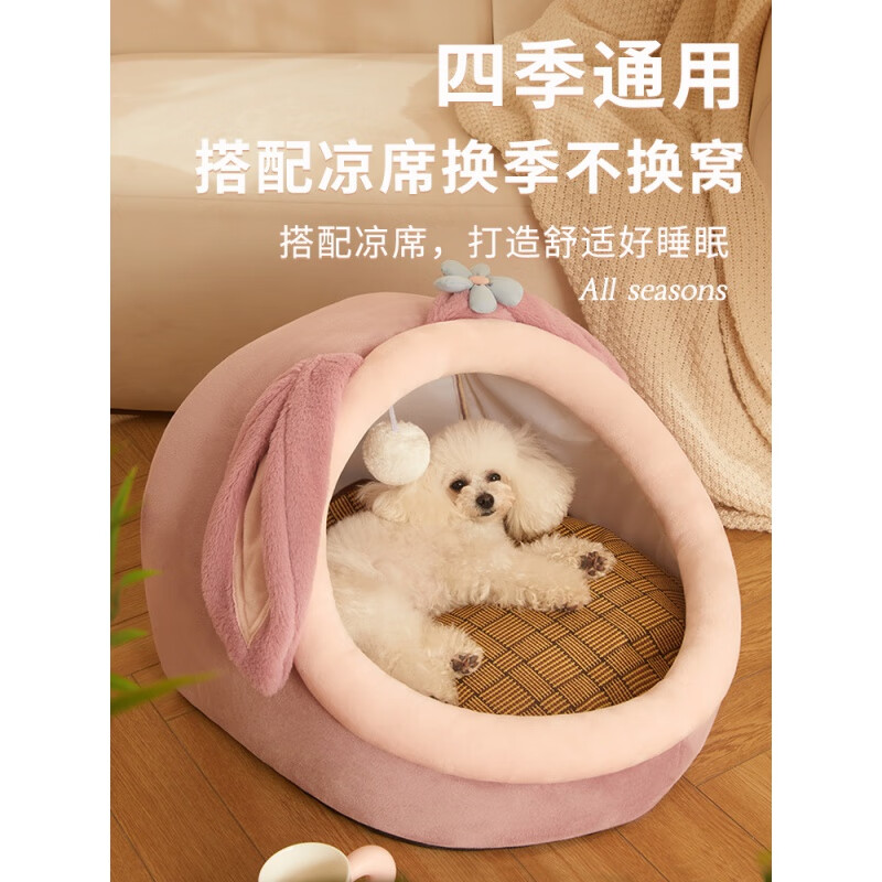 CLCEY狗窝夏窝四季通用可拆洗小型犬泰迪窝狗屋房子狗床宠物用品 粉色小兔 小号-建议5斤内宠物(幼犬过渡使