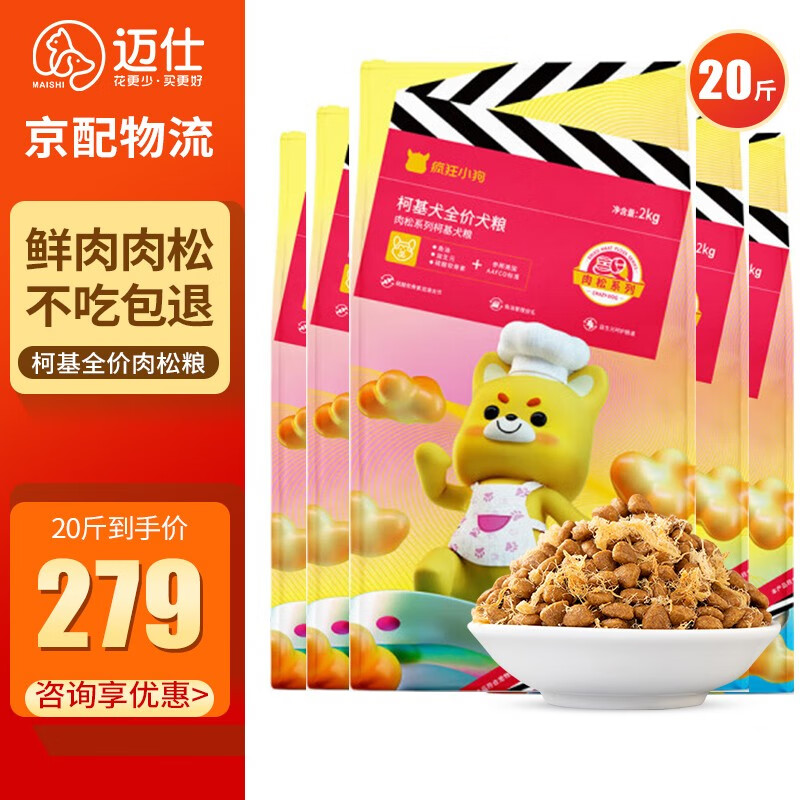 疯狂小狗 柯基狗粮专用肉松粮小型犬宠物粮幼犬成犬全犬期 【44%肉含量】柯基拼派肉松10kg