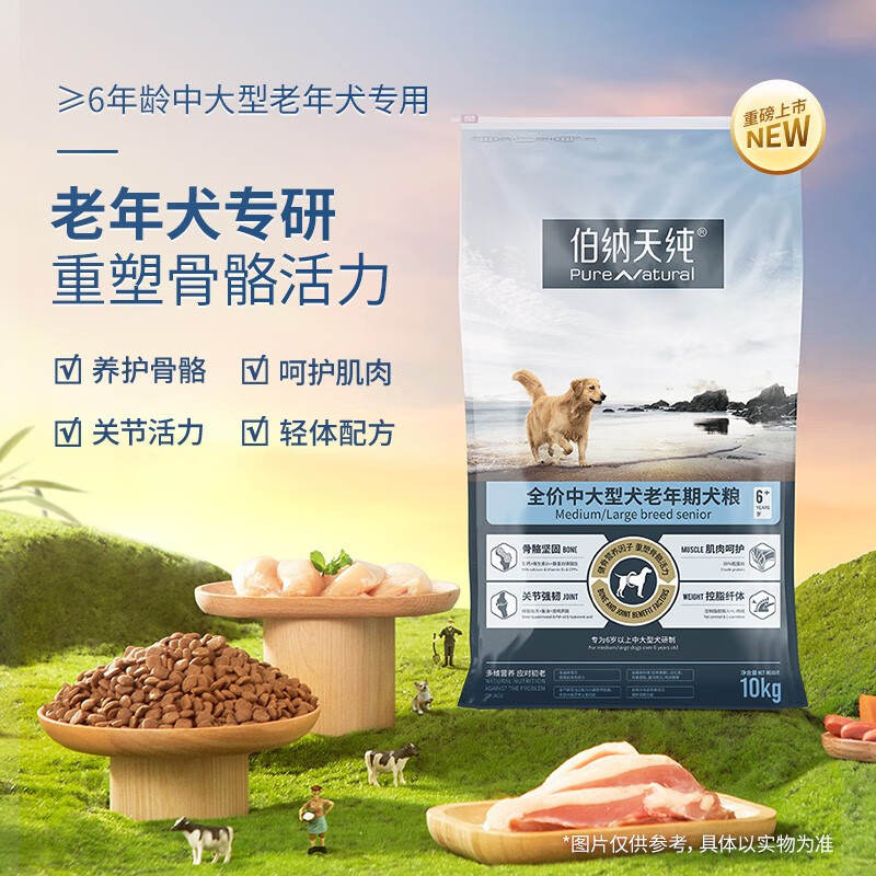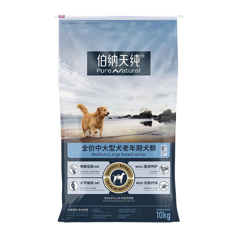 伯纳天纯宠物狗粮中大型犬通用高龄8岁以上老年犬专用狗主粮金毛阿拉斯加 中大型老年期犬粮10kg