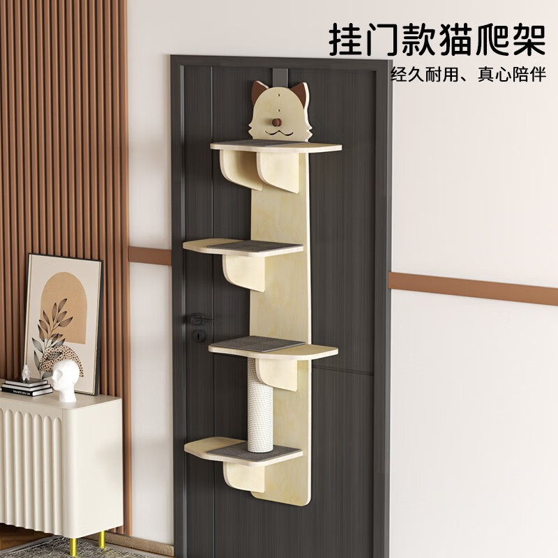 盼四季猫架猫爬架猫窝猫树一体不占地小型实木挂门式猫跳台免打孔墙壁式 猫头款