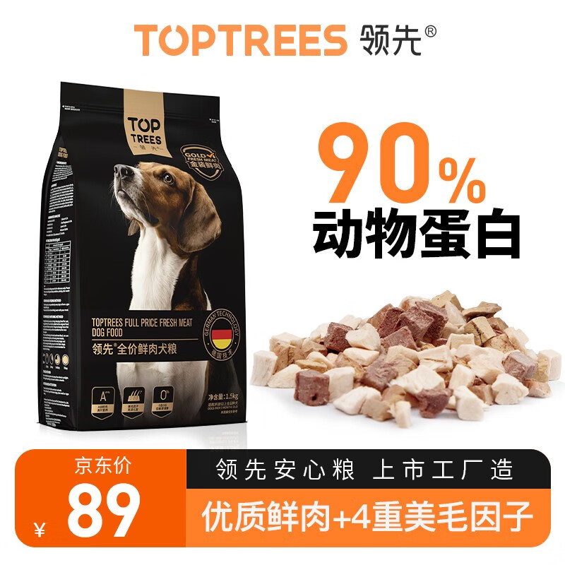 Toptrees领先 全价全期A级冻干鲜肉狗粮通用型柯基泰迪比熊天然粮3斤 【推荐】 1.5kg