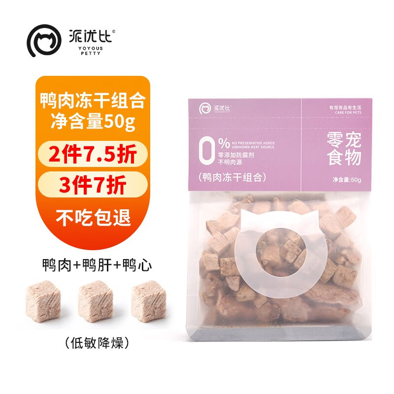 派优比 猫零食冻干猫咪零食大礼包幼猫成猫冻干鸡胸肉鸭肉鱼肉牛肉猫粮 鸭肉冻干组合50g