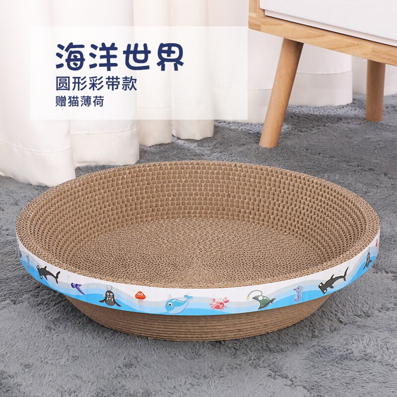 猫抓板窝碗形大号猫抓盆猫窝宠物猫玩具瓦楞纸猫爪板磨爪器猫咪用品 圆形-海洋世界(特大号)