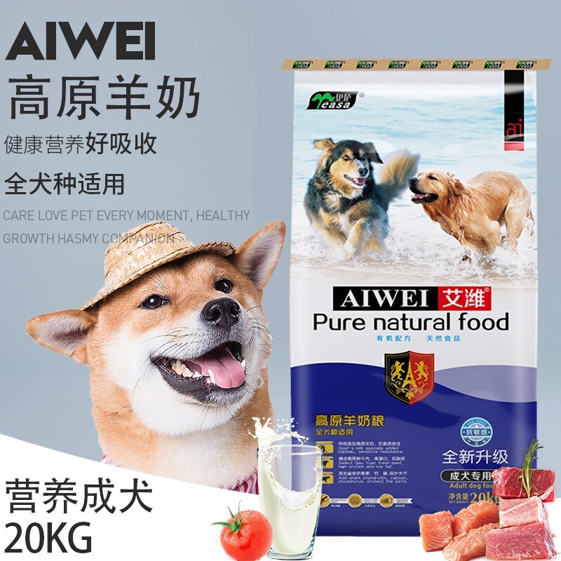 伊萨艾潍狗粮泰迪金毛萨摩耶拉布拉多全犬通用型狗粮 艾潍成犬粮20kg*2袋 -