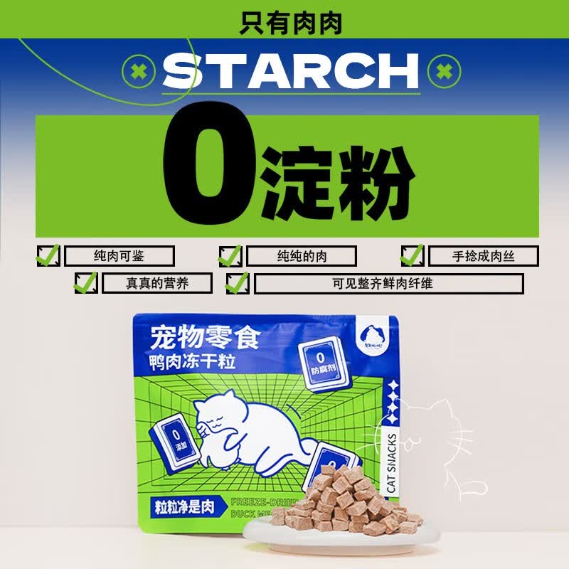 鸭肉冒冒脚脚冻干猫零食拌粮无添加无防腐剂无淀粉低敏温和富含维生素BE高营养 鸡肉冻干粒