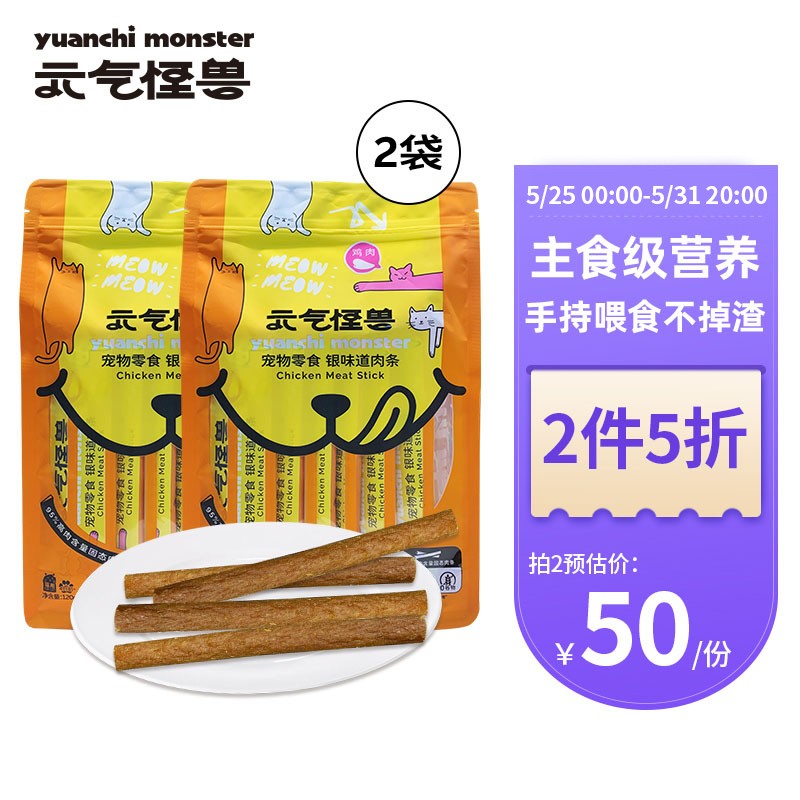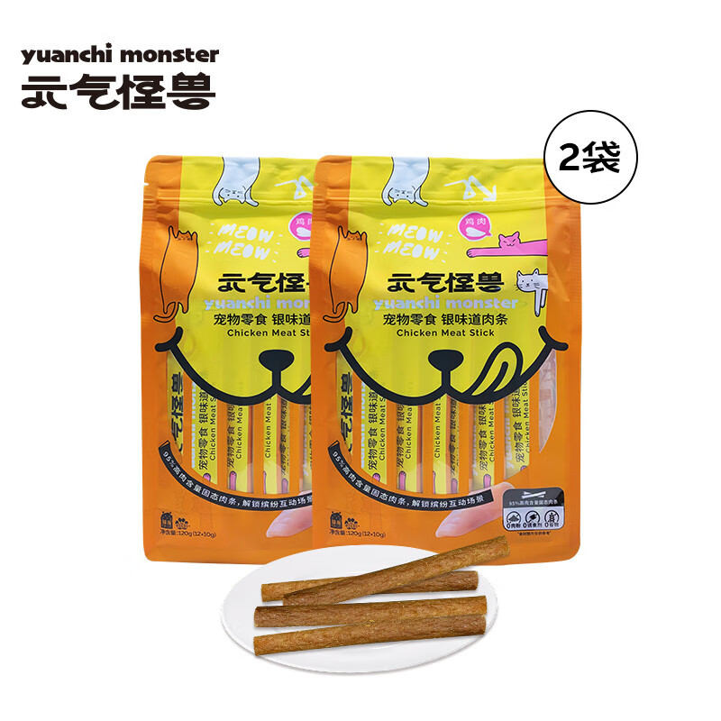 元气怪兽 猫零食猫条幼猫成猫孕猫营养零食固态肉条鸡肉味240g(120g*2袋)