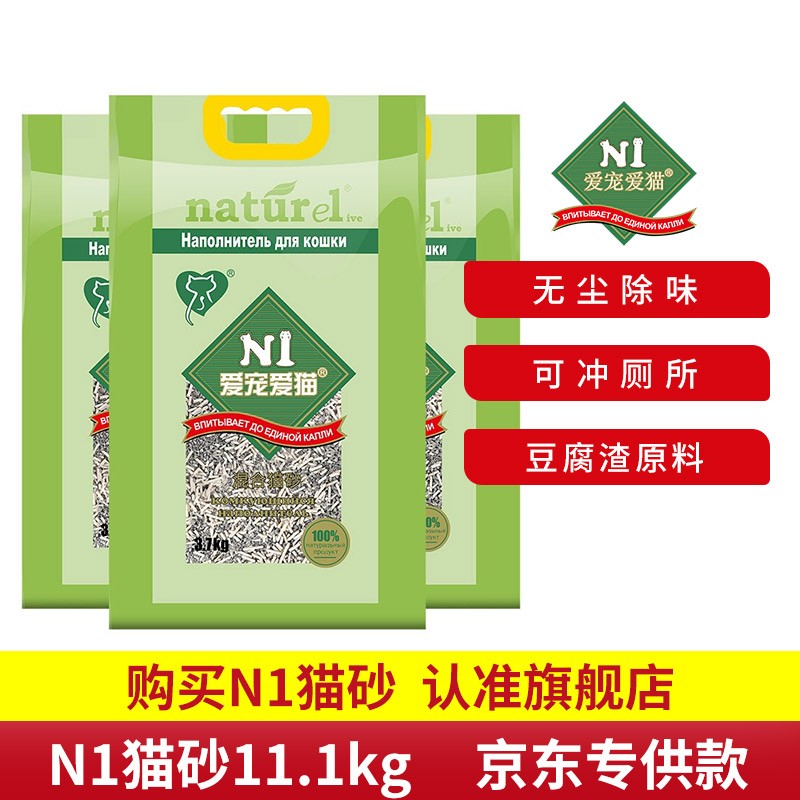 N1 爱宠爱猫N1钠基膨润土混合猫砂 无尘除味易结团猫沙猫咪用品 混合猫砂3.7kg*3(整箱)