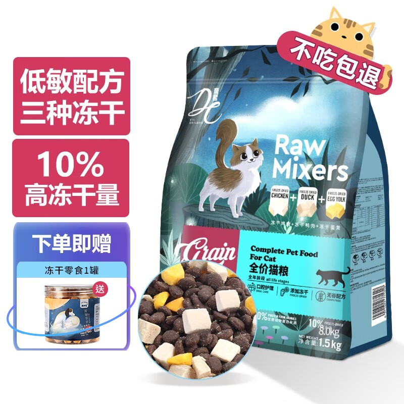帝熙(DC)全价冻干三拼猫粮宠物主粮离乳期奶糕幼猫成猫全价天然无谷低敏粮 全价猫粮【全年龄段】1.5kg