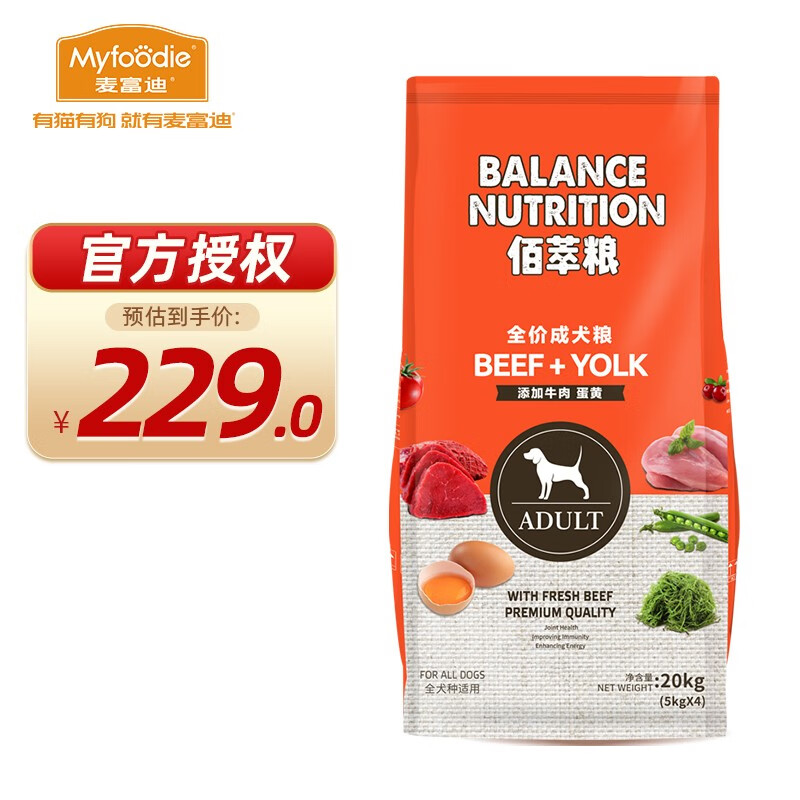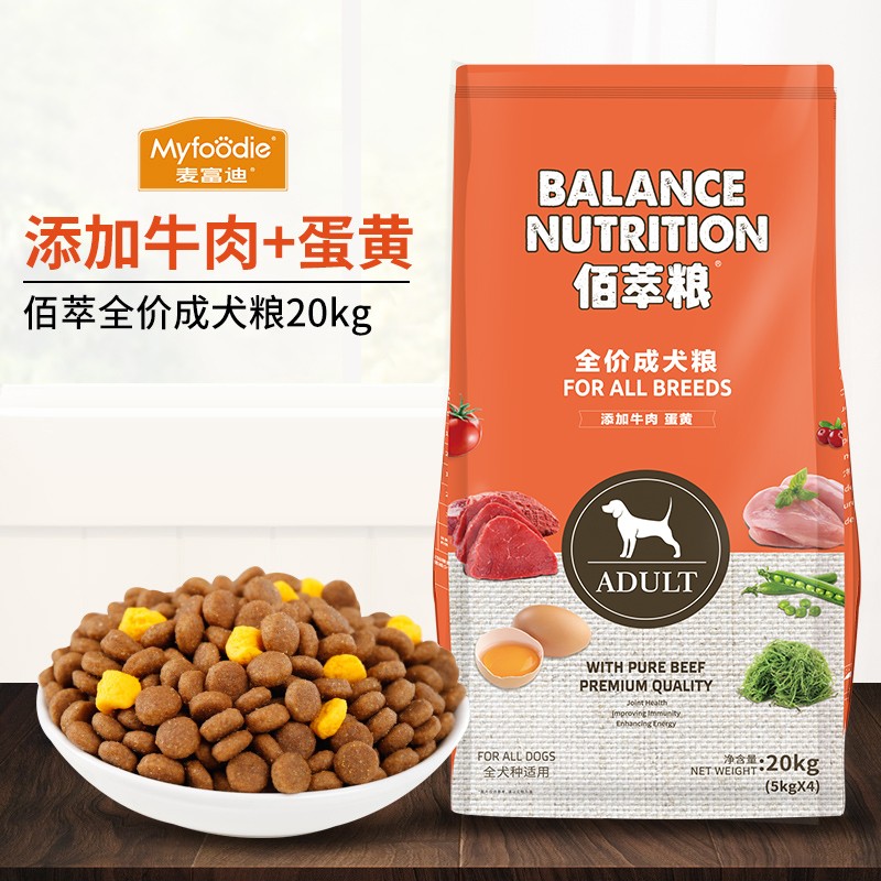 麦富迪 狗粮 泰迪金毛通用型佰萃粮 佰萃牛肉蛋黄成犬粮20kg