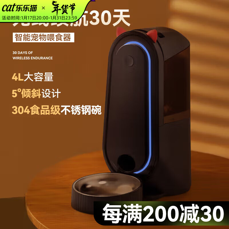 hoopet智能喂食器猫咪宠物猫碗自助猫粮喂食机狗狗无线自动投食机定时定量出粮投喂器大容量不卡粮密封 智能猫耳自动喂食器(绅士黑)