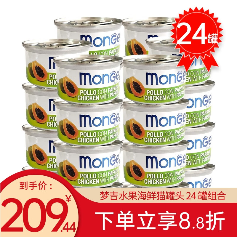 MONGE意大利梦猫罐头吉天然果冻水果金枪鱼成幼猫老年猫湿粮零食 24罐 水果系列 鸡肉 木瓜