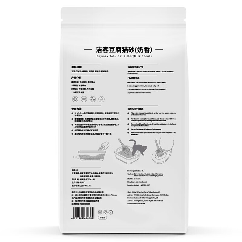 洁客猫砂 懒人猫砂混合猫砂绿茶豆腐猫砂除臭无尘易结团可冲马桶猫沙 【奶香】豆腐猫砂 2.72kg*6包