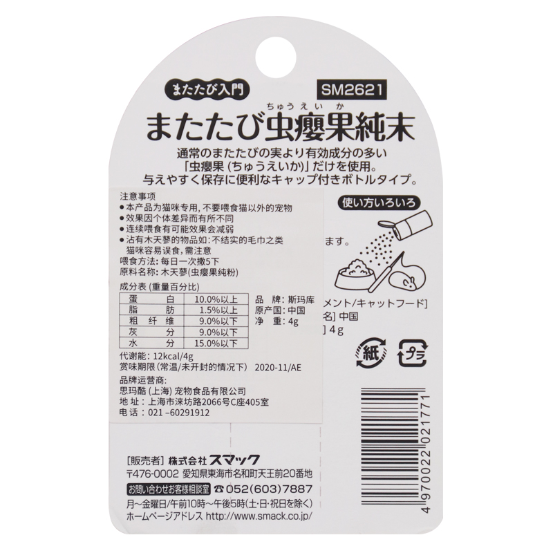 斯玛库天然木天蓼(虫瘿果纯粉)猫薄荷零食恢复爱宠元气便携瓶装猫零