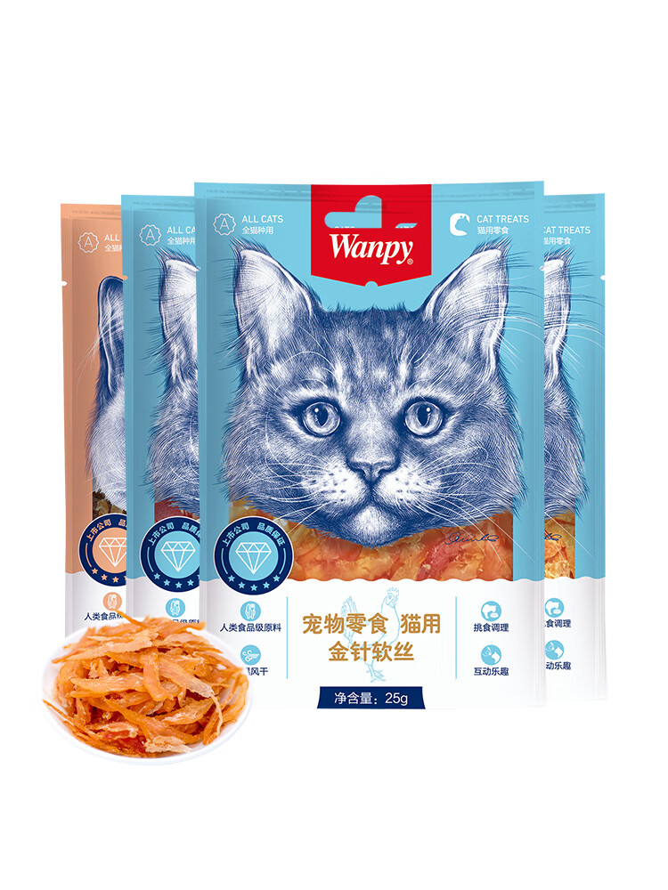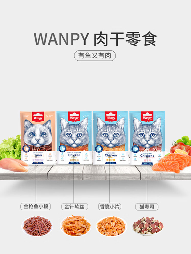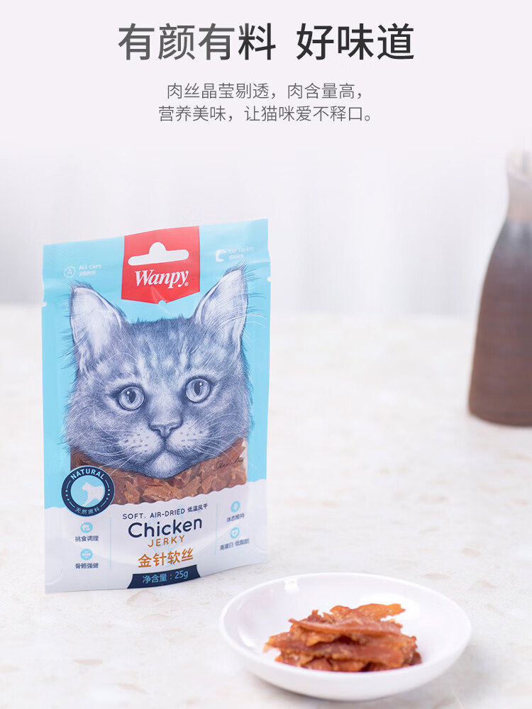 顽皮(Wanpy)金针软丝鸡肉干金枪猫咪增肥营养罐头小零食猫 【混合口味】可备注 3.包