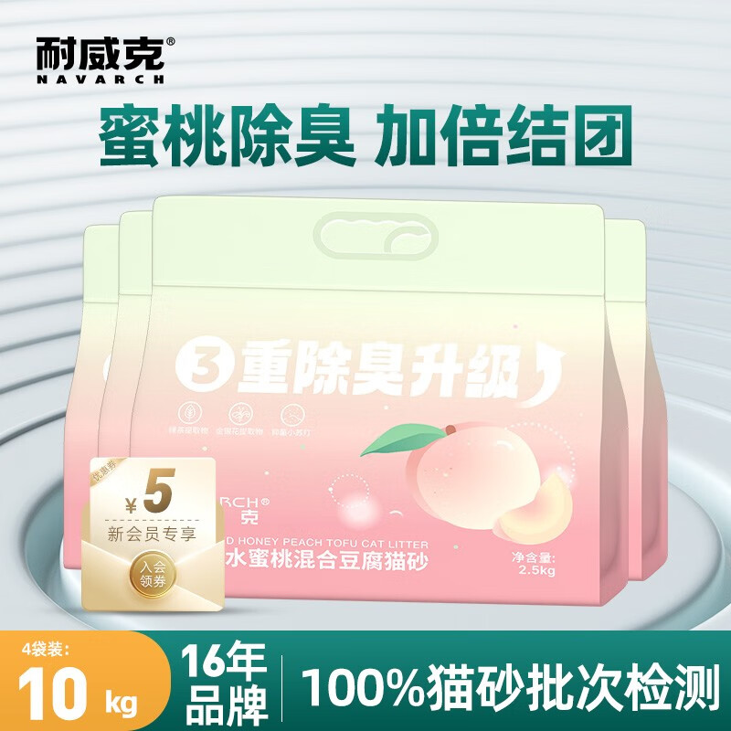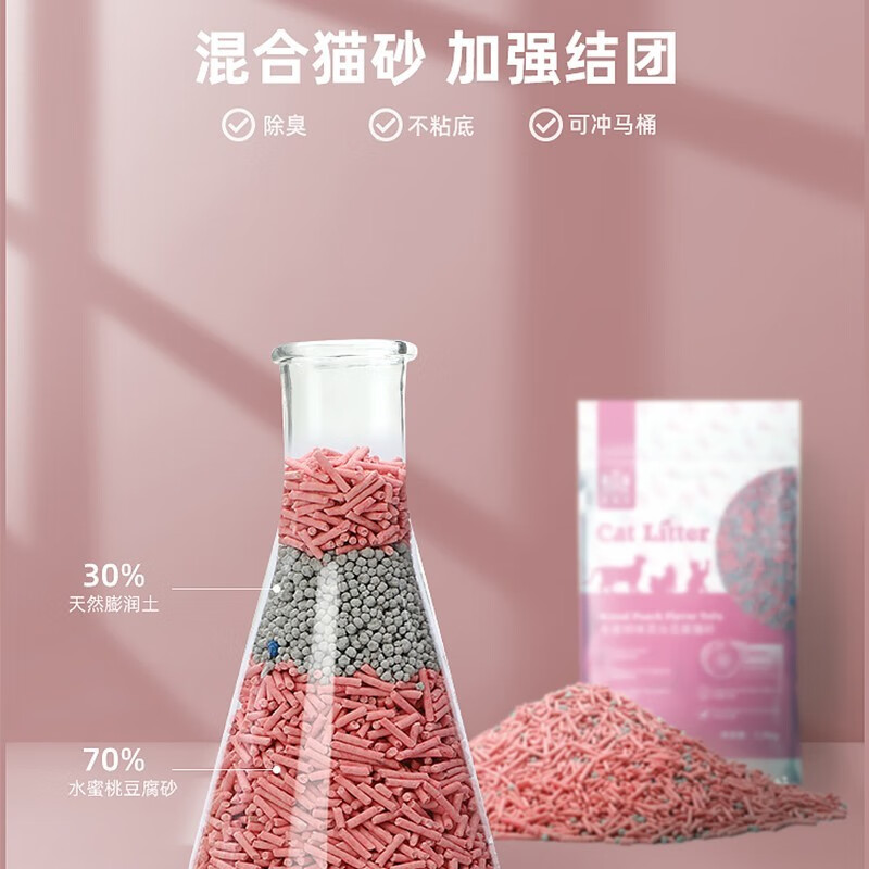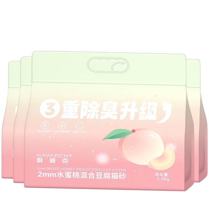 耐威克 猫砂 豆腐结团猫砂 易溶低粉尘可冲厕所 水蜜桃混合砂2mmX4包
