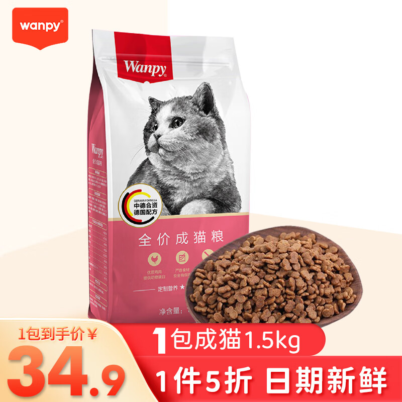 顽皮wanpy猫粮鸡肉味全价猫粮居家宠物主粮幼猫成猫布偶英短美短猫粮专用营养发腮低温烘焙粮猫咪食品 全价猫粮*成猫 1.5kg