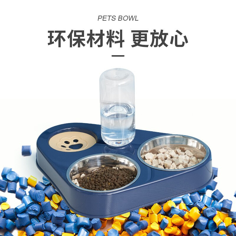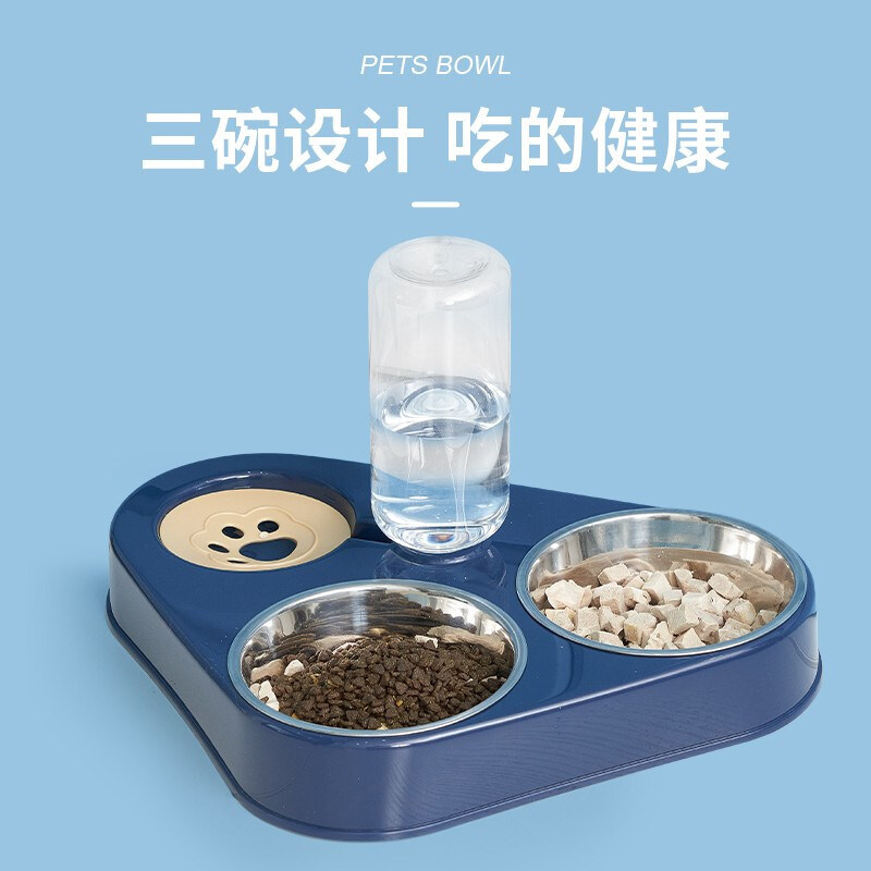 卡咔咖宠物猫碗自动饮水器猫粮食盆狗食盆宠物喂食三碗蓝色KA1101