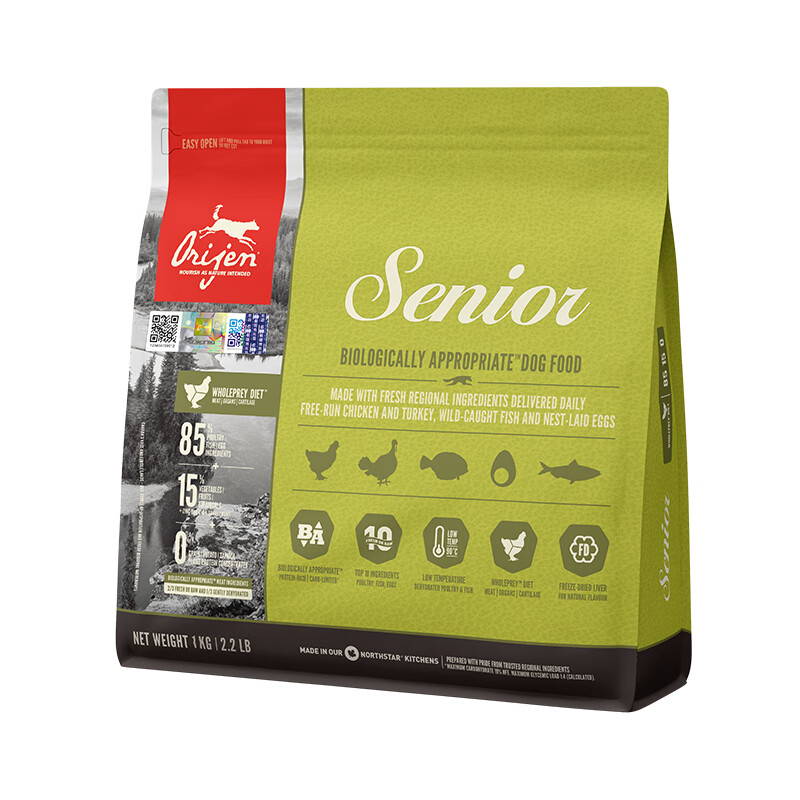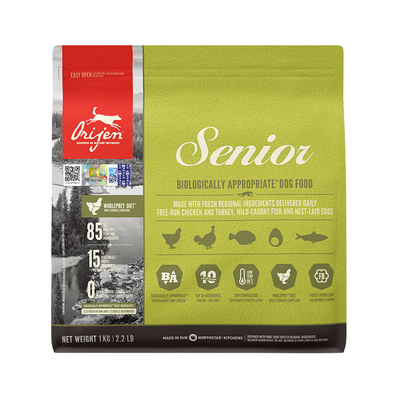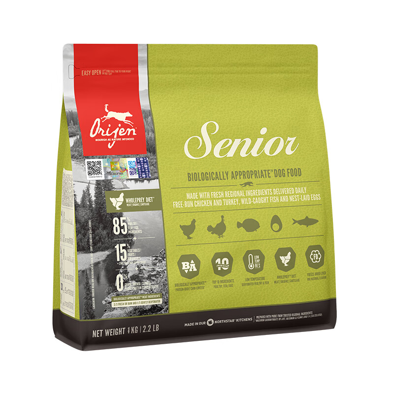 加拿大原装进口原始猎食渴望(Orijen)老犬粮1kg 鸡肉味无谷天然老年狗粮