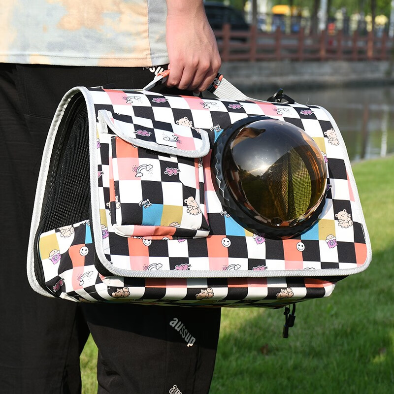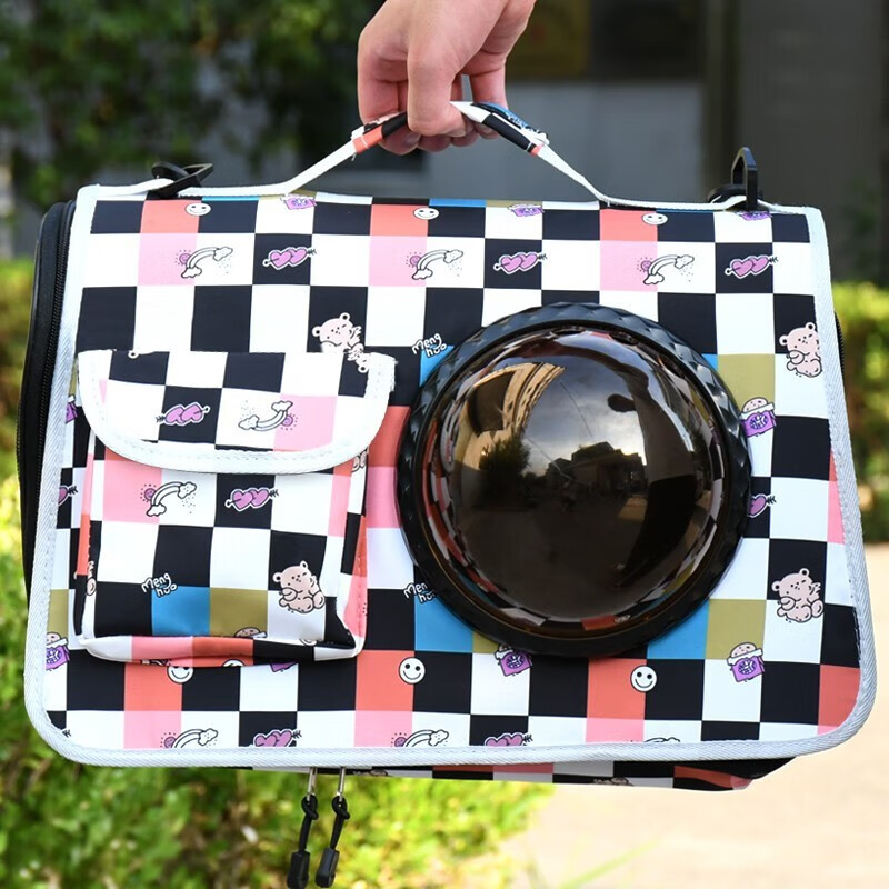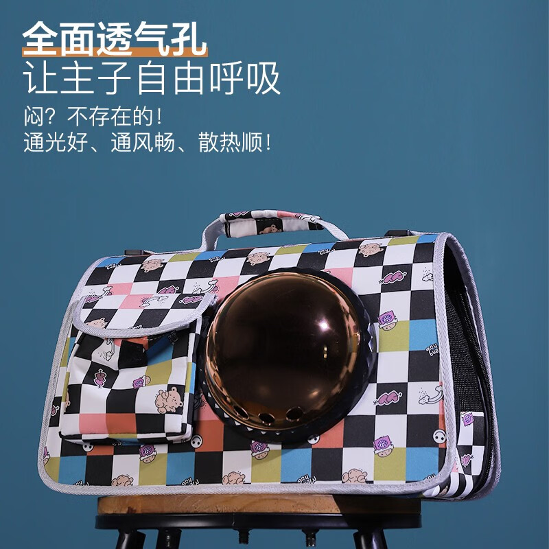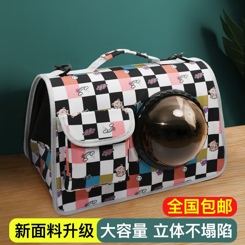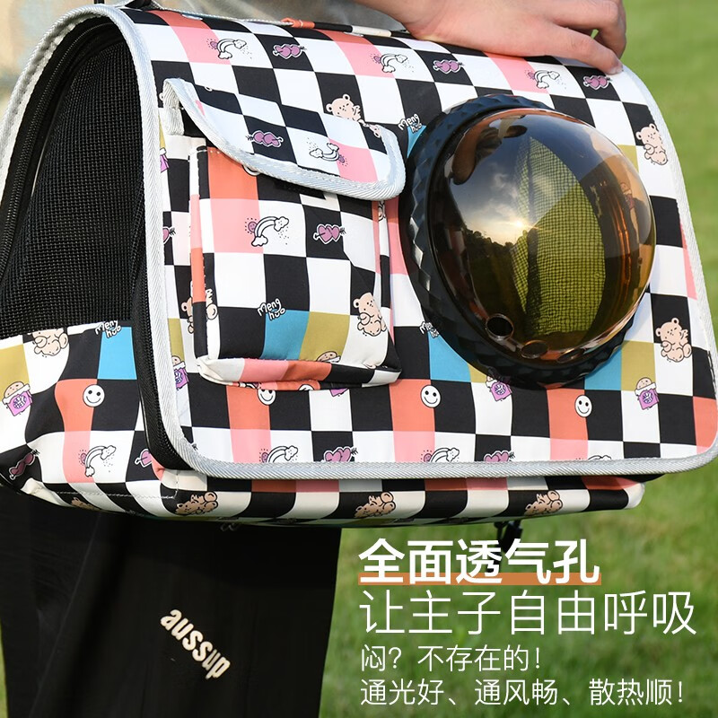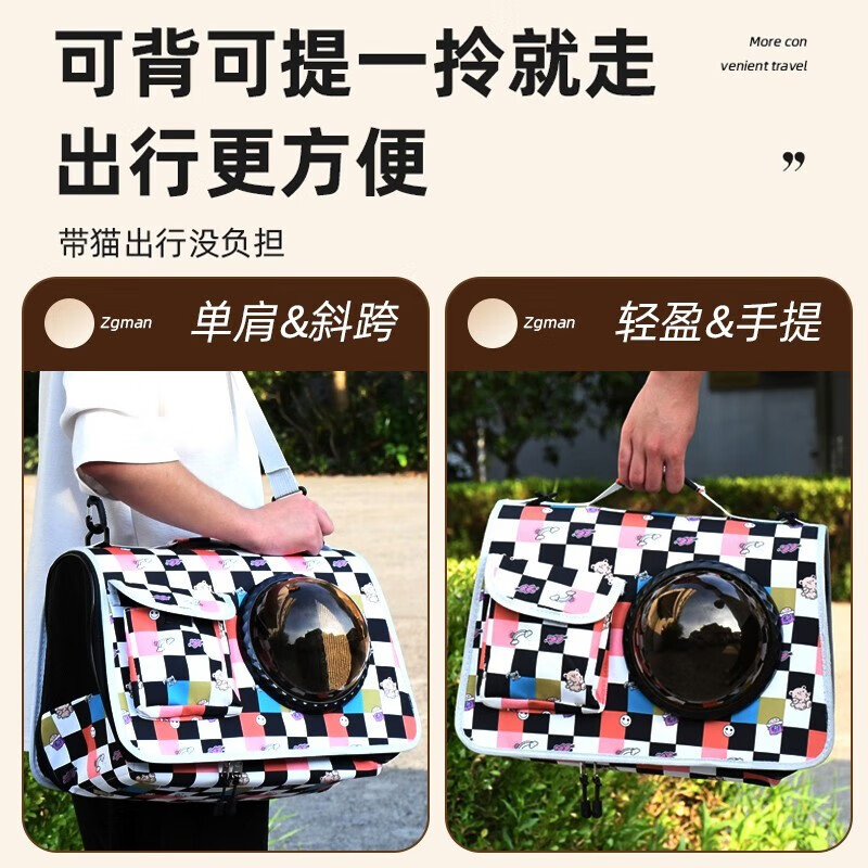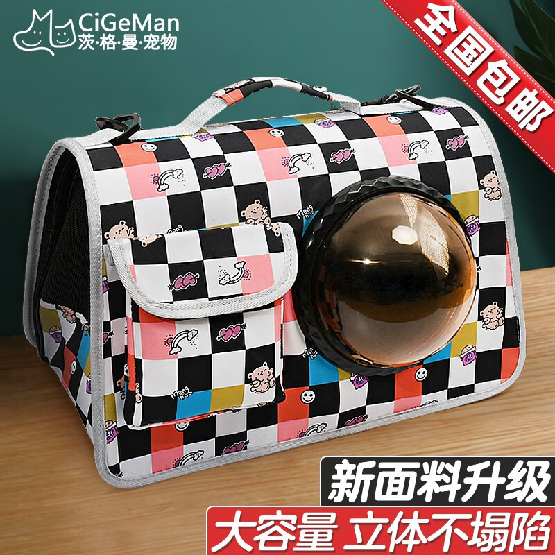 茨格曼 宠物猫包外出透气款大号手提式猫背包猫包便携外出太空舱宠物包 便携斜跨背包-格子小熊
