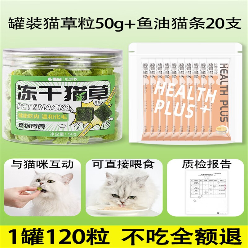 瓜洲牧猫草片粒冻干猫咪零食猫薄荷饼干磨牙棒懒人化毛球片增肥猫咪用品 猫草粒50/g 鱼油猫条20条 000kg