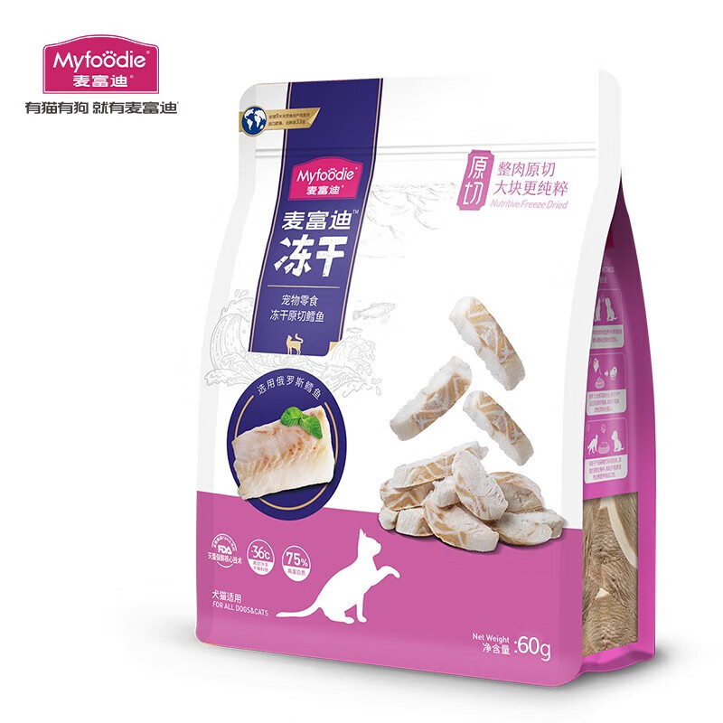 麦富迪 猫零食 冻干猫咪零食成猫幼猫通用宠物猫冻干 原切冻干鳕鱼60g
