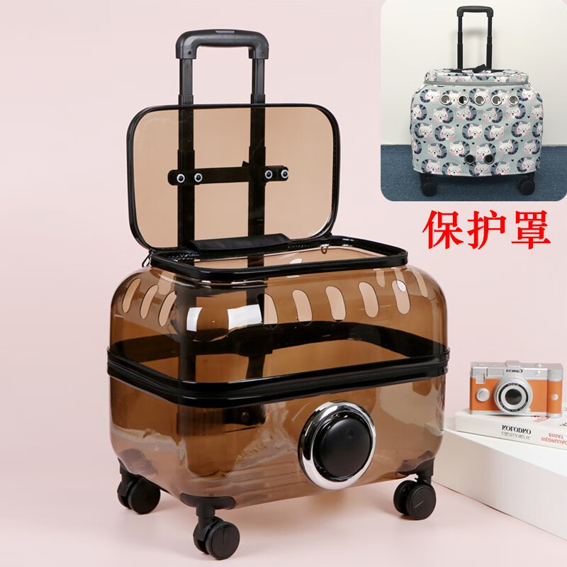 宠天使猫包外出便携宠物拉杆箱大容量猫咪太空舱狗箱宠物推车透明猫书包 k35茶色新风 保护罩