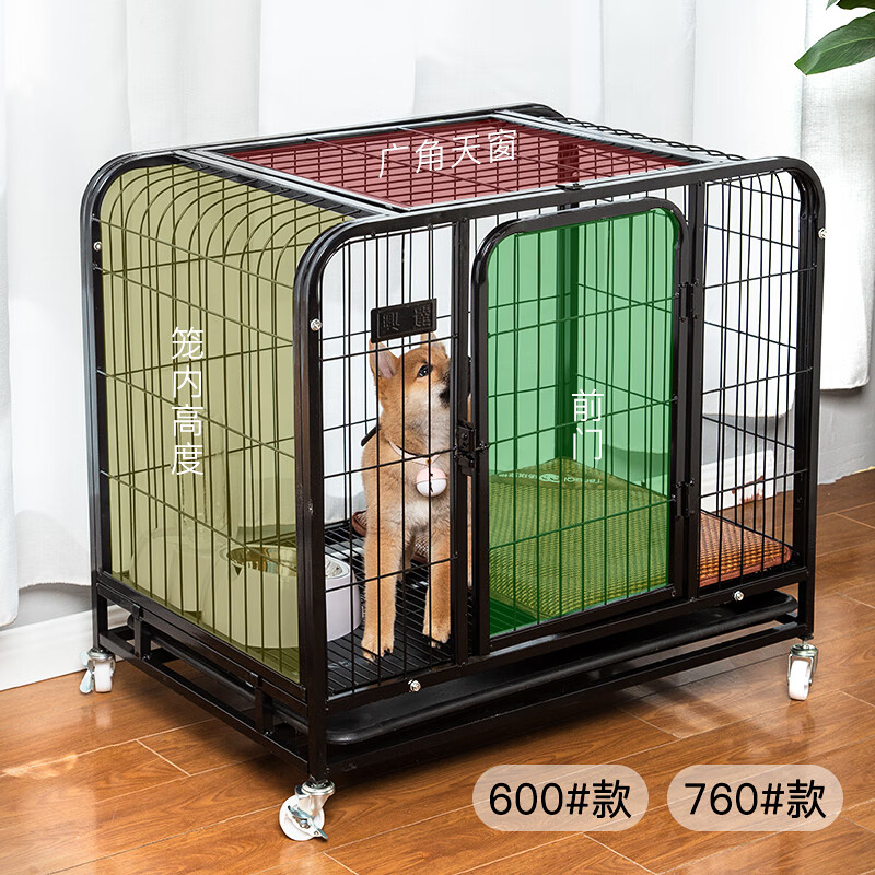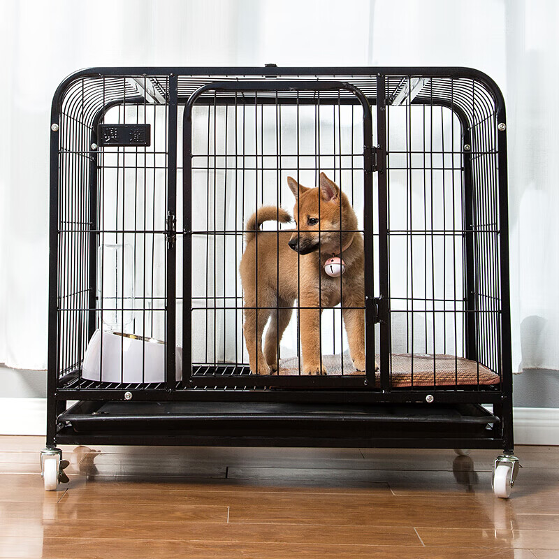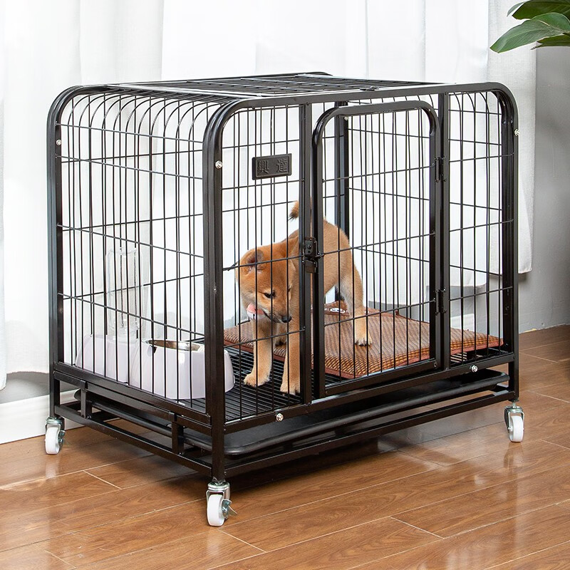 享宁静狗笼子中型犬狗窝厕所一体小型犬狗狗笼铁网宠物笼不占地方室内家 黑加粗款85*60*70,3.5mm加粗 精装款:水食双碗 基础款
