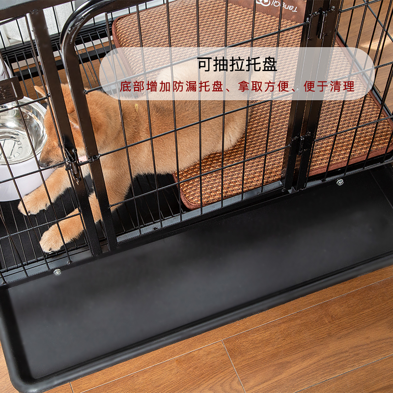 汤琪(TANGQI)大型犬狗笼子中型犬小型犬加粗加密加固方管狗屋带厕所宠物笼子狗 黑色M号760# 77*51*71cm