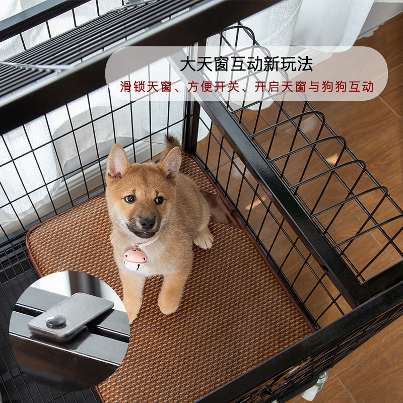 风宠 中小型犬狗笼 带厕所柴犬笼柯基泰迪宠物笼室内家用钢木质狗笼子 雅致有沿边 黄胡桃黑丝 98*64*75带轮