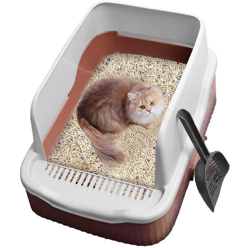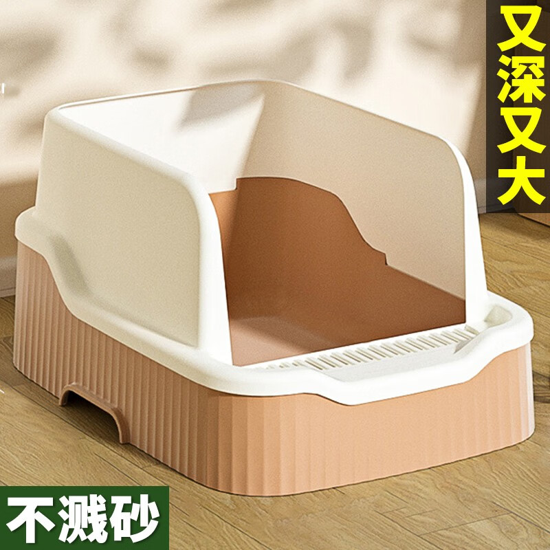 茨格曼猫砂盆特大号加深猫屎盆猫咪厕所肥猫猫砂盒盘布偶猫沙盆超大号 浅咖色