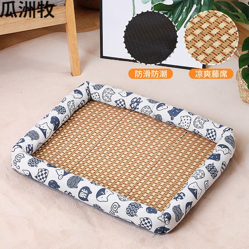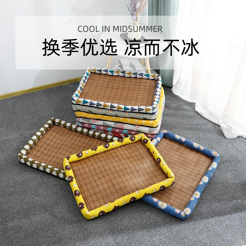 瓜洲牧狗窝猫窝夏天凉狗窝宠物用品泰迪小型中型犬狗床垫子四季通用 凉席方窝白底猫 L-大型25斤内