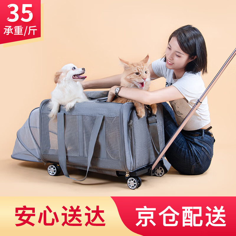 DO DO PET宠物拉杆箱包两厢可隔离航空箱 猫咪外出便携拉杆包出行手提猫包 深灰拓展款-前后带帐篷-拉杆分离