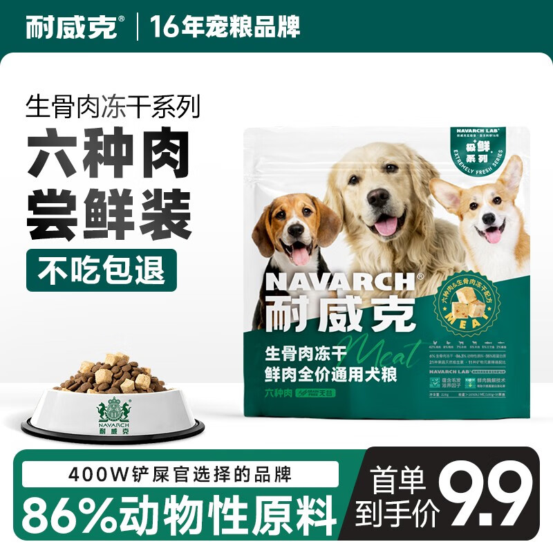 耐威克 狗粮 全价六种肉通用成犬犬粮 无谷冻干 泰迪柯基金毛拉布拉多 六种肉鲜肉通用犬粮228g
