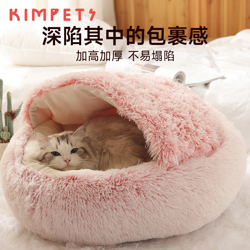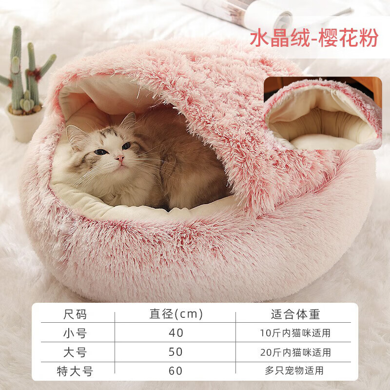 KimPets猫窝四季通用宠物小猫咪屋被子冬季保暖猫狗窝冬天用品封闭式猫床 柔制水晶绒(樱花粉) 柔软包裹 直径60cm,适合30斤内宠物