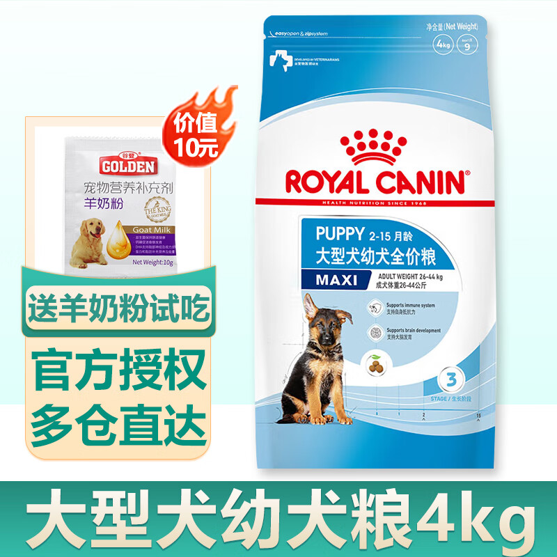 ROYAL CANIN 皇家狗粮 大型犬奶糕狗粮 通用粮 断奶离乳期幼年期 【2-15月】MAJ30大型幼犬4KG