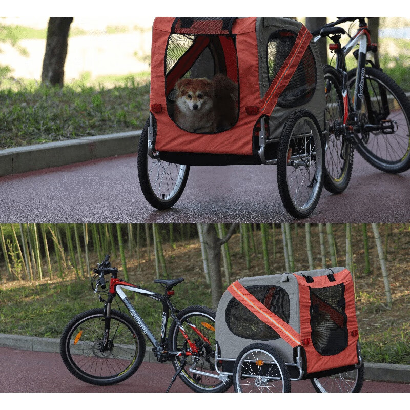 鹿凌青 宠物车手推车 大型宠物自行车拖车猫狗狗推车折叠户外骑行旅行拖挂车 橙色双拼 重量12kg