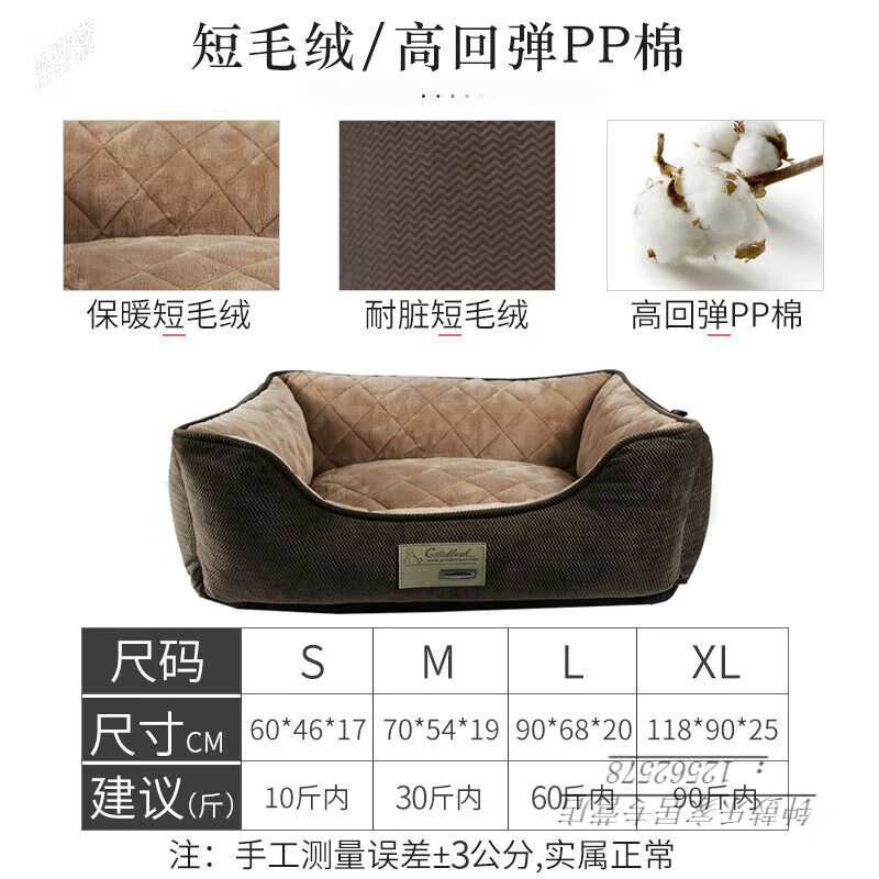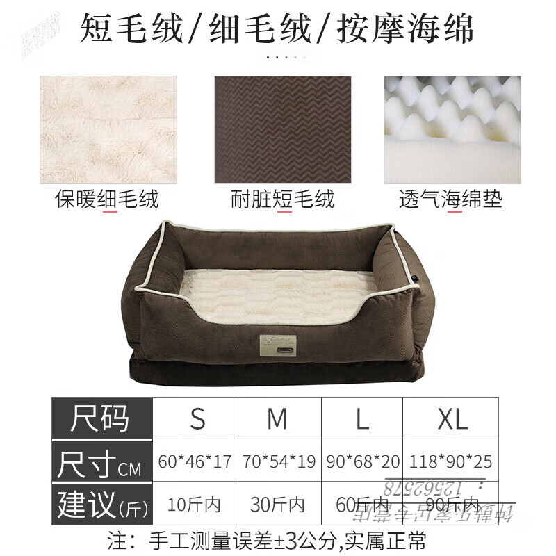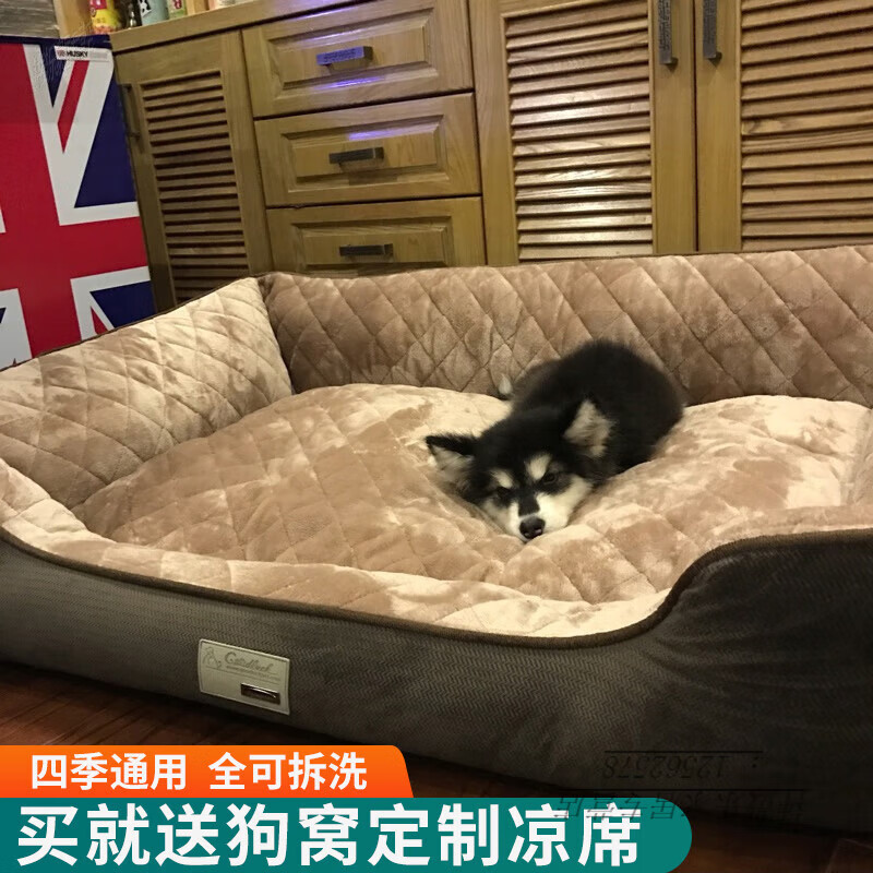 ZEZE狗窝四季通用可拆洗夏季中大型犬金毛狗垫夏天凉窝狗床宠物窝用品 经典棕色狗窝【底部三维PP棉】