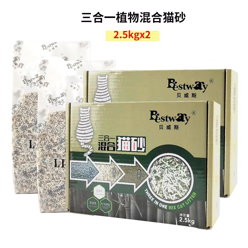 贝威斯三合一混合植物猫砂2.5kg除臭低尘豆腐砂幼猫咪祛味猫沙快速结团 建议购买丨三合一混合植物猫砂2.5kg*2
