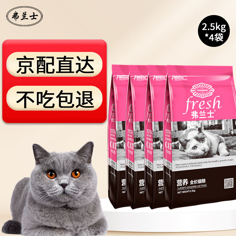弗兰士猫粮成猫幼猫全阶段 通用型均衡营养全价天然猫粮 通用猫粮10kg(2.5kg*4包)