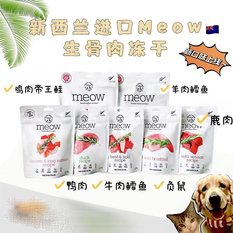 宠道夫(Randolph)冻干猫粮新西兰meow负鼠鹿肉冻干发腮生骨肉主食 鸡肉帝王鲑 50g*2包