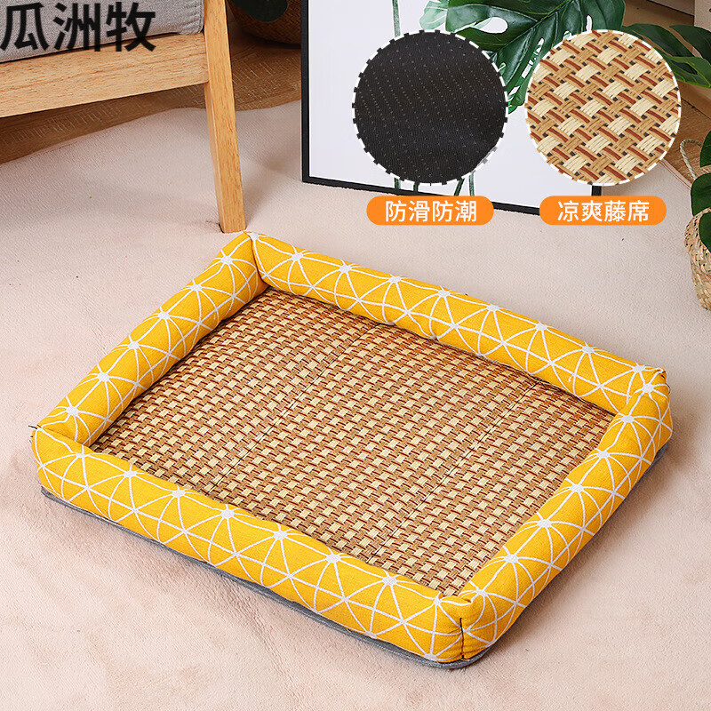 瓜洲牧狗窝猫窝夏天凉狗窝宠物用品泰迪小型中型犬狗床垫子四季通用 凉席方窝小黄鸭 S-小型5斤内